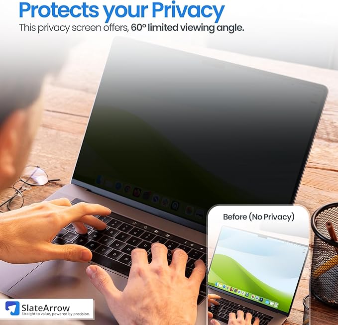 - [SUPERIOR PRIVACY PROTECTION] Engineered with 30° viewing angle restriction, this privacy shield ensures that only the user directly in front of the screen can see the content, keeping your data safe in public spaces.