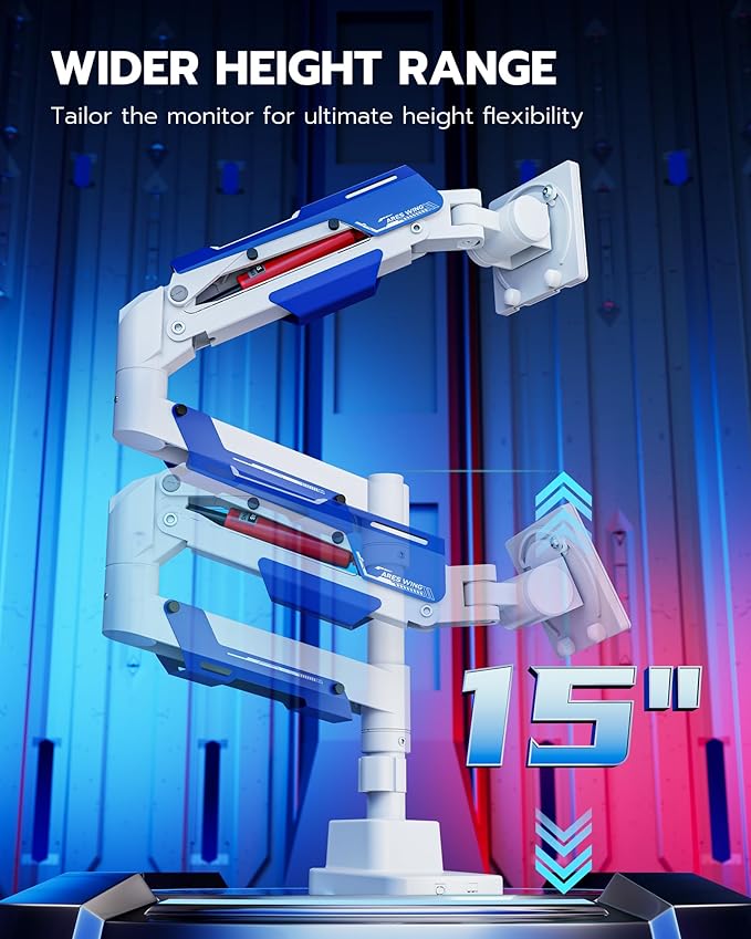 - 【Stability and Durability】Crafted for heavy-duty use, this single minitor arm features a premium build with reinforced aluminum and high-quality steel. Surviving over 20,000 fatigue tests, this monitor mount offers reliable support and stability for ultrawide and heavy duty monitors, ensuring peace of mind for users. The single monitor desk mount features infustrial-grade gas springs, ensuring effortless adjustments