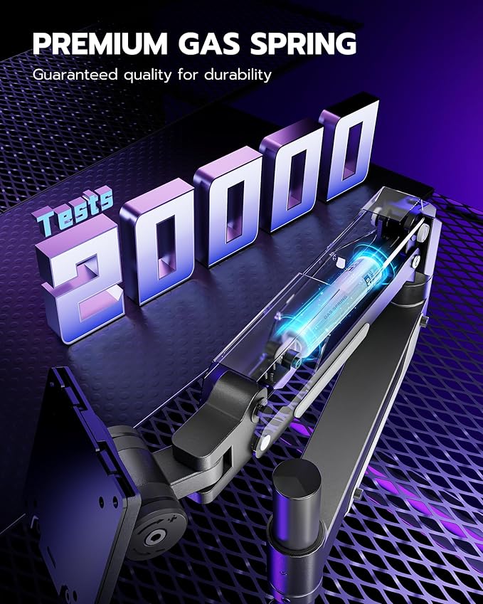 - 【Stability and Durability】Crafted for heavy-duty use, this single minitor arm features a premium build with reinforced aluminum and high-quality steel. Surviving over 20,000 fatigue tests, this monitor mount offers reliable support and stability for ultrawide and heavy duty monitors, ensuring peace of mind for users. The single monitor desk mount features infustrial-grade gas springs, ensuring effortless adjustments
