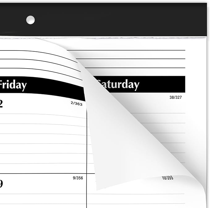 - PROFESSIONAL DESIGN – Calendar has black headband and two eyelets for optional wall hanging. Two black poly corner keep pages flat for hanging or desktop use. Pages are perforated for easy tear out.