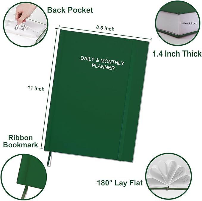 - Features - 8.5'' × 11'' Planning Pages | Fabric Cover | Personal Information | Yearly Overview | Important Dates and Anniversaries| Holidays |Two Pages Each Day | Contacts | Hourly Schedule Pages | Two Bookmarks | Back Pocket | Elastic Strap Closure |.
