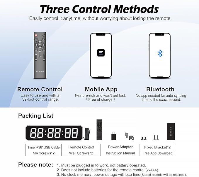 - 【App+Remote Control】Supports both app and remote control options. The app is feature-rich, so you never have to worry about losing the remote. It automatically syncs time via Bluetooth, accurate to the second, making it very convenient.
