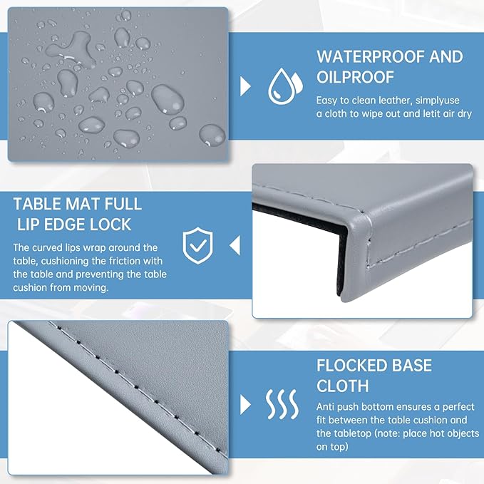 - 【Feature】FULL LIP of the desk mat with edge-locked,Arc angle lip wraps the edge of the desk, effectively buffer the rub between desk and body, and protect your clothing out of scratch with desk edge, also protect your elbow perfectly,it can also prevent mat shift