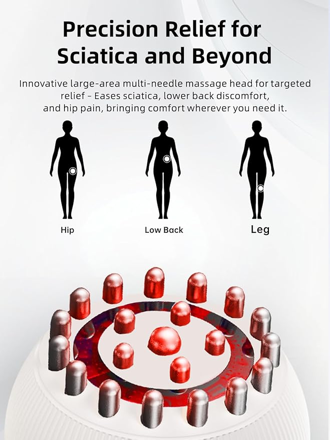 - Comprehensive Sciatica Pain Relief: This SoothingPulse massager is a sciatica pain relief device designed to target sciatica, sciatic nerve pain, lower back, and leg pain. Its combination of pulse, heat, vibration, and light therapy provides deep tissue relief for sciatica pain, helping to reduce inflammation, ease muscle tension, and improve circulation.