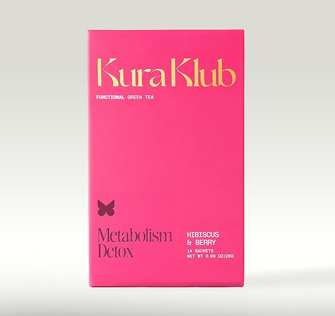Kura Klub Green Tea Metabolism Blend — Herbal Detox & Beauty Support with Hibiscus| Clean Energy, Digestion & Bloat Relief | Strawberry Lemon Flavor | 14 Plant-Based Pyramid Tea Bags | No Microplastics