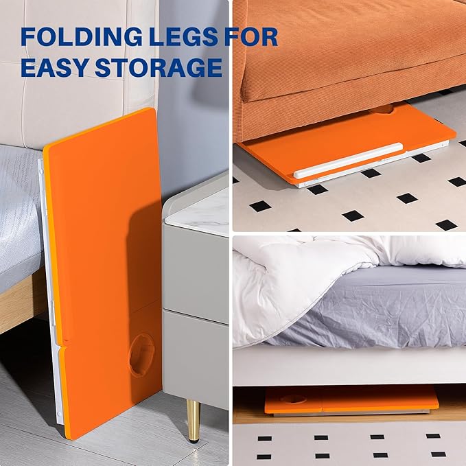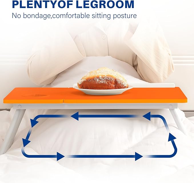 Laptop Desk for Bed Couch, Adjustable Foldable Bed Table with Cup Holder, Breakfast Serving Tray, Portable Laptop Lap Desk Stand for Working Reading Writing Eating Gaming (Orange)