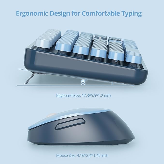- 【Full-Size Keyboard with Round Keycaps】: This retro keyboard and mouse wireless combo features noise-reduction keys with a square mechanism for stability and quick rebound. The round keycaps are designed for comfort, making it feel like typing on a typewriter. Enjoy long hours of use without hand fatigue with this cute keyboard