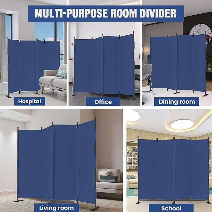 Room Divider, 4 Panel Upgraded Folding Privacy Screen, 88” Highly Secretive Separation with 3 Metal Feet, Partition Screen, Lightweight Freestanding Wall Divider Bedroom (Blue)