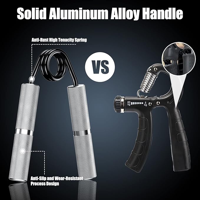 - 【Excellent Material】-- The Oblitor hand gripper trainer handle is made of high-quality knurled aluminum, not easy to rust, non-slip and wear-resistant. The high-tenacity carbon steel spring gives the forearm strengthener exerciser a long service life, the number of folding times for grip strength trainer can reach 100,000 times. Each forearm strengthener is equipped with a removable handle cover. The handle cover with air holes is non-slip, absorbs sweat and does not hurt your hands