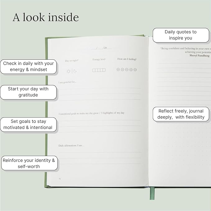 - 📓 CLEAN, CALMING, AND EASY TO USE: Whether you're new to journaling or returning after a break, our intuitive undated layout makes it simple to start and even easier to stick with.