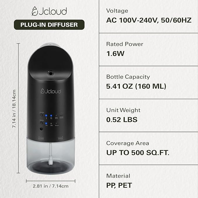 - SIMPLE SETUP FOR INSTANT ENJOYMENT: No apps or complicated settings needed! Simply fill the JCLOUD diffuser, plug it in, choose your preferred mode and intensity, and enjoy your aromatic experience. The button-controlled interface makes it incredibly easy to use, even for first-time users.