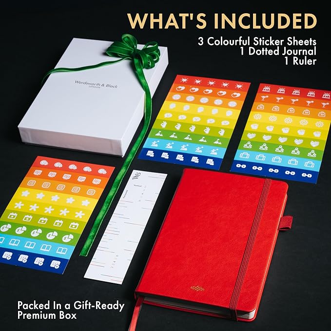 Wordsworth & Black A5 Bullet Dotted Journal 216 Dotted Pages, Hardcover Grid Dot Leather, 120 GSM Paper, Journaling Notebook for Work & Sketching, Journals for Women, Men - Gifts Box Included Red