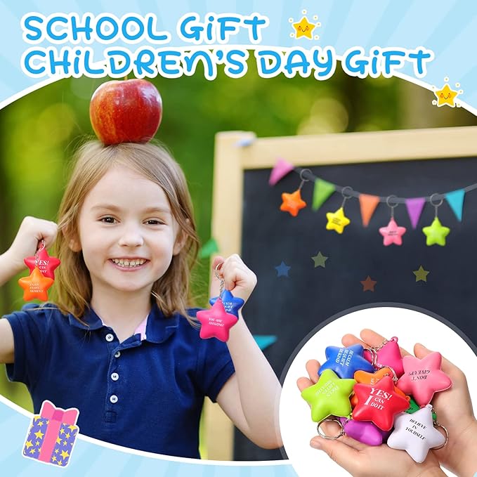 Zomiboo 40 Pcs Motivational Stress Balls Bulk Keychain Foam Star with Relief Quotes Employee Appreciation Gift for Relieve Anger