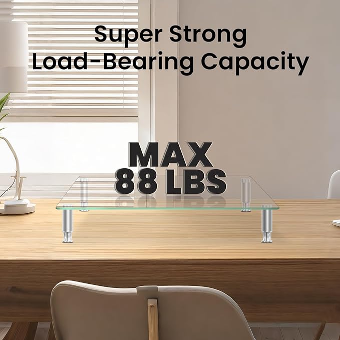 - ✅Sturdy & Stable: The Tempered glass monitor stands are simple, beautifully made, sturdy and great value for money. Super durable construction with non-slip rubber, increases stability and protects your furniture surface far away from scratches; Their sizes will match well with your laptop, computer, notebook, printer or other monitors in 88 lbs, great choice for 1 monitors at home or office for study or work.