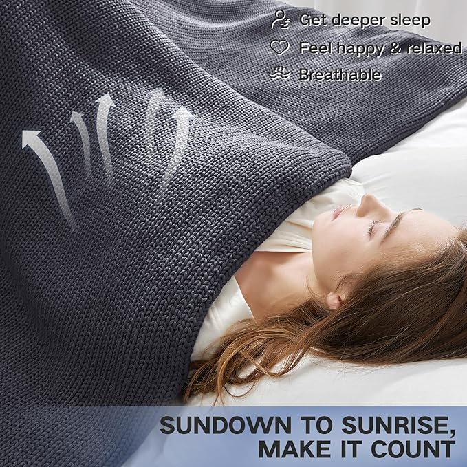 Guohaoi Knitted Weighted Blanket for Adults (Dark Grey 48"x72" 10lbs) No Beads Cooling Throw Blanket for Hot Sleepers, Home Decor Breathable Chunky Knit Heavy Blanket Use on Full Size Bed