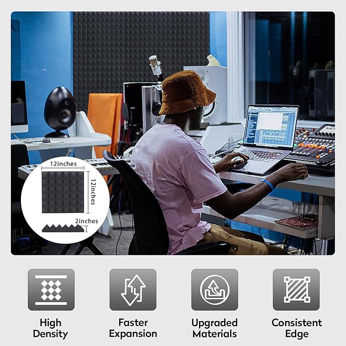 - 【Improve Sound Instantly】Designed with 2" thick high-density foam, these acoustic panels help absorb unwanted noise, reduce echo, and improve sound clarity—ideal for recording studios, gaming rooms, or home offices.