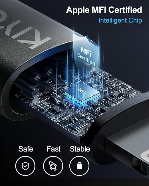 - Apple MFi Certified iPhone Charging Cable: The MFi certified iPhone USB A to Lightning Cord is compatible with all Apple system devices with Lightning ports, and the built-in smart chip ensures safe and fast charging and data transfer. Current up to 2.4A, transmission up to 480Mbps, quickly transfer images, music, videos, and files within seconds.