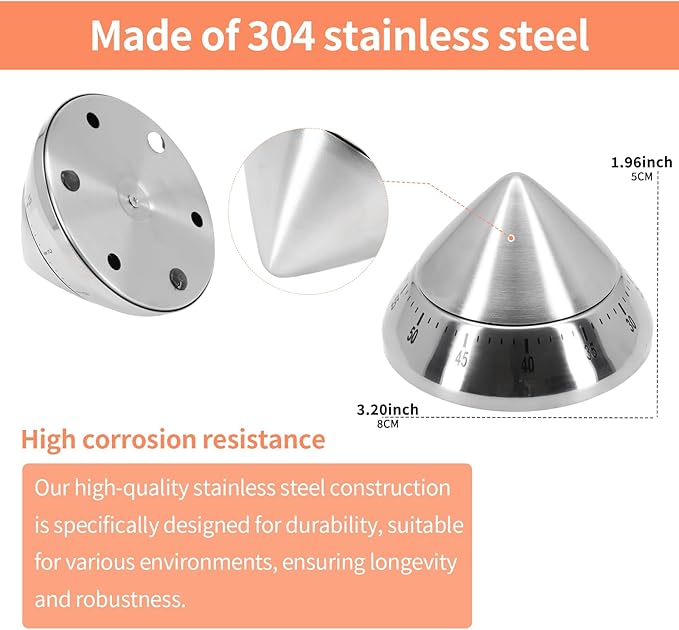 - 【Easy 2-Step Operation】Using this mechanical timer is simple! Step 1: Wind the timer clockwise from 0 to 55. Step 2: Wind it counterclockwise from 55 to your desired time. Follow these steps carefully to ensure the alarm rings when time’s up.