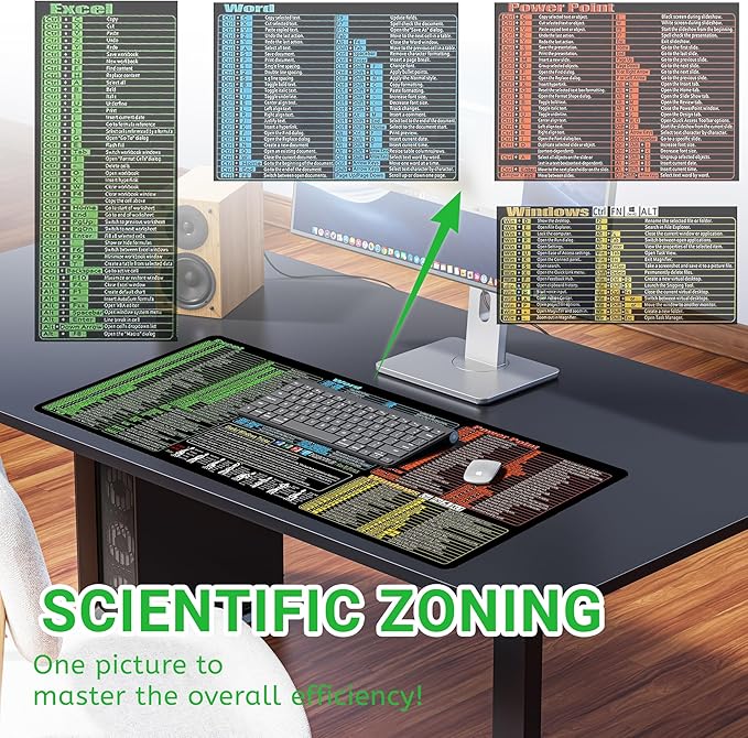 Excel Cheat Sheet Desk Pad, Updated Shortcuts Mouse Pad (31.5"x11.8") | Keyboard Shortcut & XL Gaming Desk Mat for Office/Home | Non-Slip Stitched Edges, Spill-Proof | Employee Appreciation Gifts