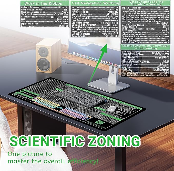 Excel Cheat Sheet Desk Pad, Updated Shortcuts Mouse Pad (31.5"x11.8") | Keyboard Shortcut & XL Gaming Desk Mat for Office/Home | Non-Slip Stitched Edges, Spill-Proof | Employee Appreciation Gifts