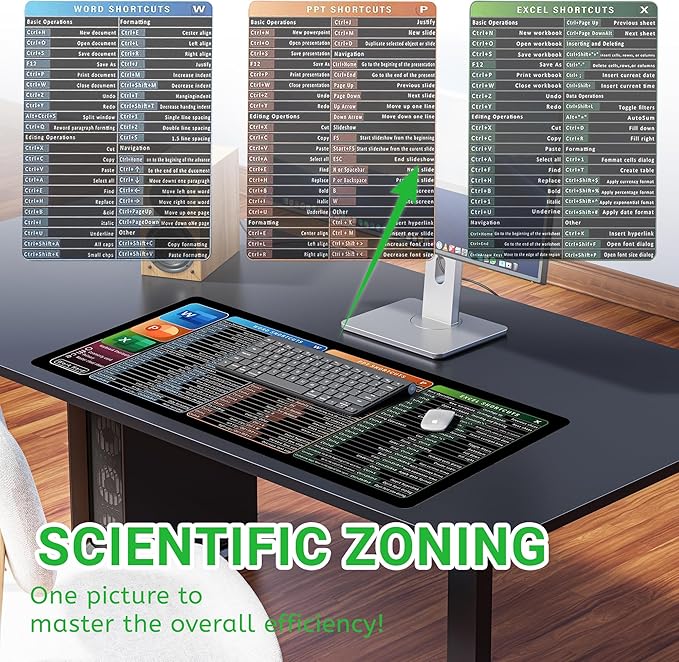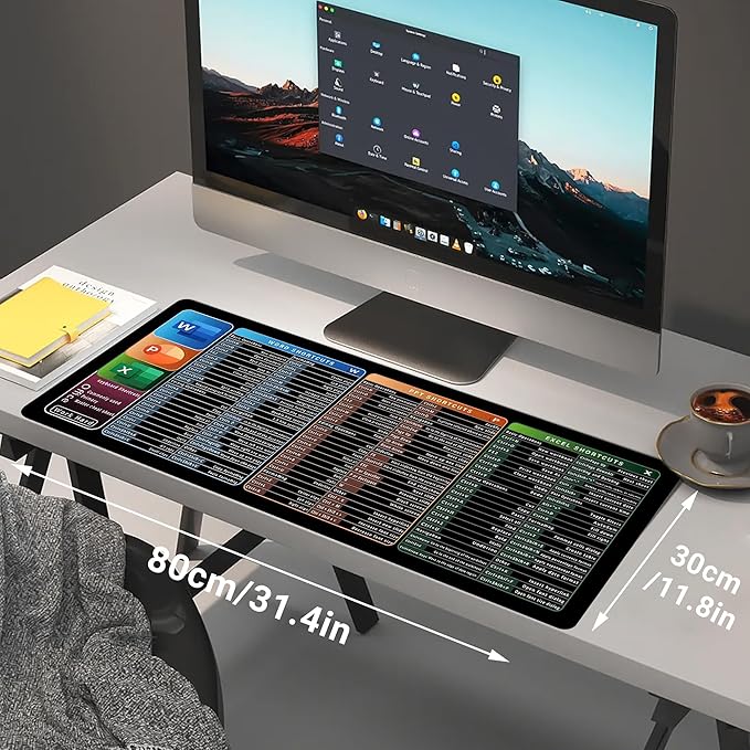 Excel Cheat Sheet Desk Pad, Updated Shortcuts Mouse Pad (31.5"x11.8") | Keyboard Shortcut & XL Gaming Desk Mat for Office/Home | Non-Slip Stitched Edges, Spill-Proof | Employee Appreciation Gifts