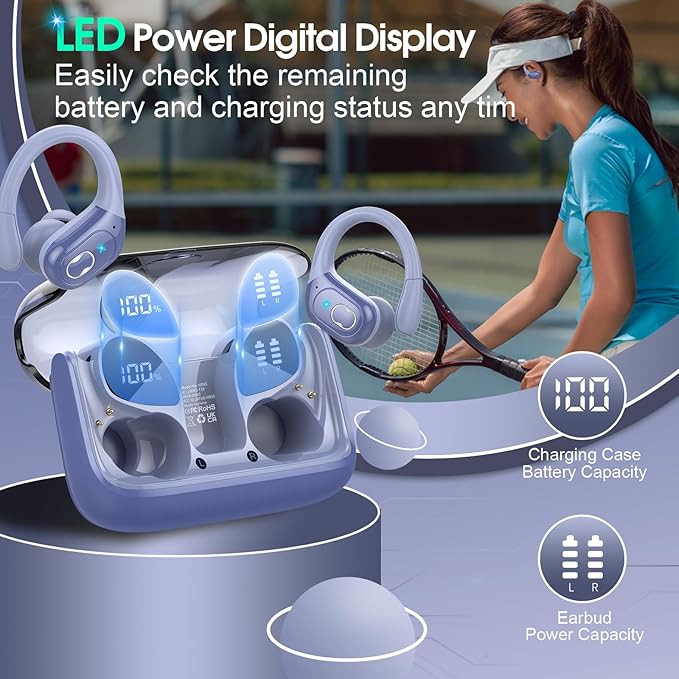 - 75 Hours Playtime and Dual LED Display: Running headphones provides up to 15 hours continuous using time on a single charge, portable charging case can charge the earbuds for 5-6 times, giving 75 hours of a total playtime. Whether on the road or in daily life, it will provide unparalleled convenience and smart experience. The dual LED display on earphones accurately display the remaining power of charging case and the charging progress of Wireless ear buds.