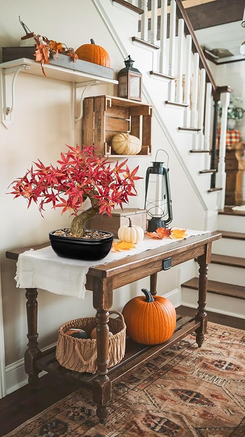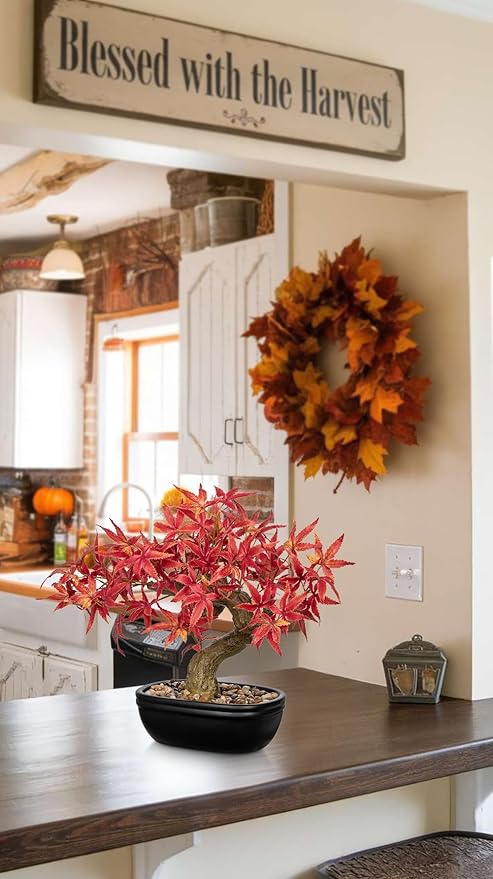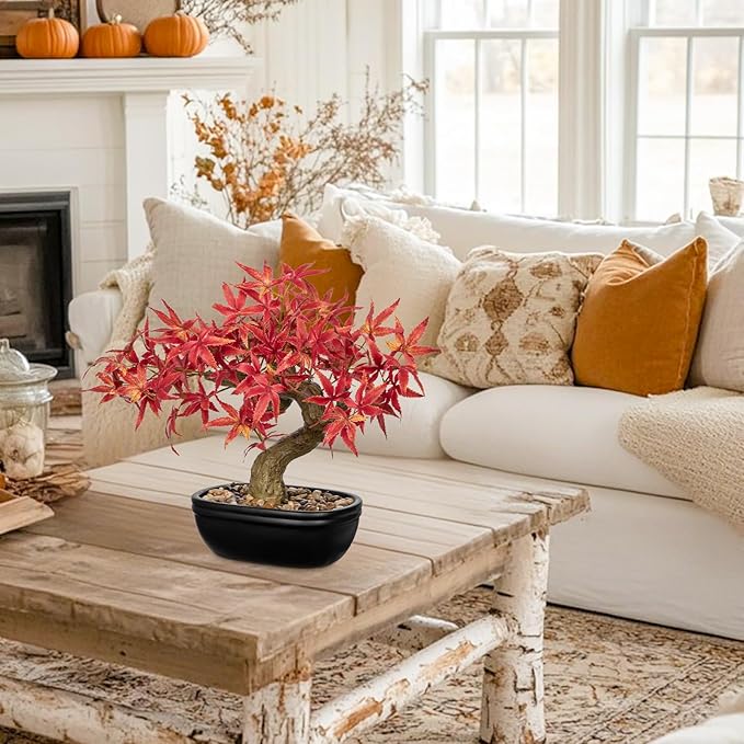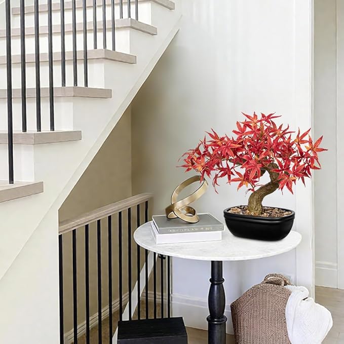 - Realistic Artificial Maple Leaves – Lifelike faux maple foliage with natural colors, ideal for Japanese bonsai decor, indoor plant display, or home office greenery without maintenance.