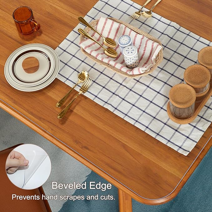 - 【TIPS TO KEEP THE CLEAR TABLE MAT FLAT AFTER RECEIVING THE PRODUCT】Roll it in reverse and press it with a heavy object for 24 hours and more.