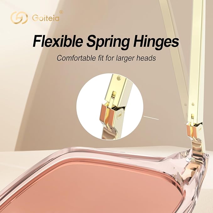 - Ultra-Comfortable & Stylish Design.Crafted with a lightweight TR90 frame and premium metal temples, Goiteia glasses offer a sleek, refined look. Flexible spring hinges ensure a perfect fit for all face shapes, making them ideal for all-day wear