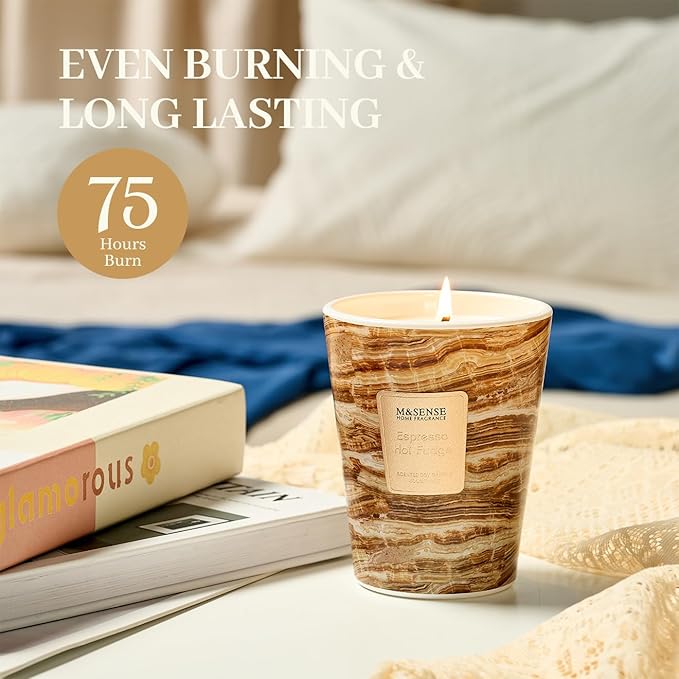 M&SENSE EspressHotFudge Scented Candles for Home, Lead-Free Wick Highly Scented Jar Candles, 14.1 Oz 80 Hours Lasting Burning Candles Gifts for Women, Relaxing Aromatherapy Candle for Stress Relief