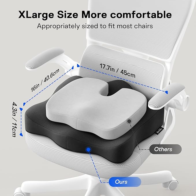 - 【Widely Practical】At 18.1"×16.5"×4.3"/2.36", this pressure relief seat cushion fits office chairs, car seats, wheelchairs, and more. Use it as a coccyx cushion for tailbone pain, seat cushions for office chairs, or memory foam seat cushions for office chairs—all while enjoying the included travel-friendly storage bag.