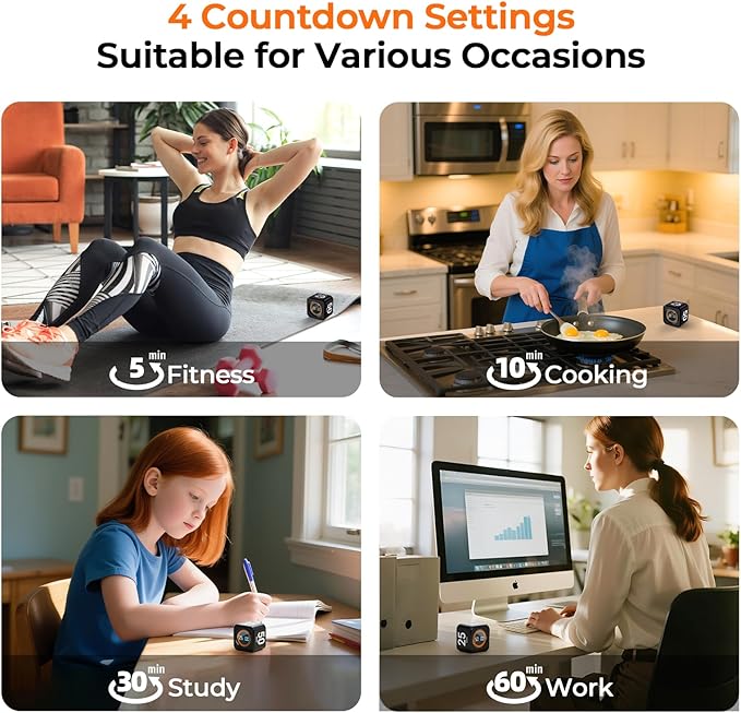 EooCoo Pomodoro Timer Cube, Visual Focus Timer with Gravity, Countdown 5/10/25/50 Min, Adjustable Silent, Rechargeable Productivity Tool for Office, Kitchen, Gym, Yoga, Meditation, Classroom