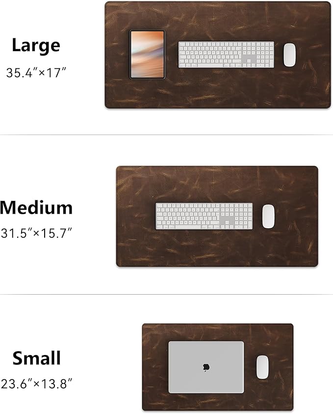 - High-quality natural & Self-Healing Leather desk Pad:3 mm thickness designed, Thicker than normal chrome-tanned leather super durable and sturdy, not easy to wear out and not peel. This leather has Self-Healing function. Scratches will fade when wiped with fingers or beeswax. And as the time passed, the scratches will gradually fade or disappear. Scuffs Blend into the Vintage Charm.