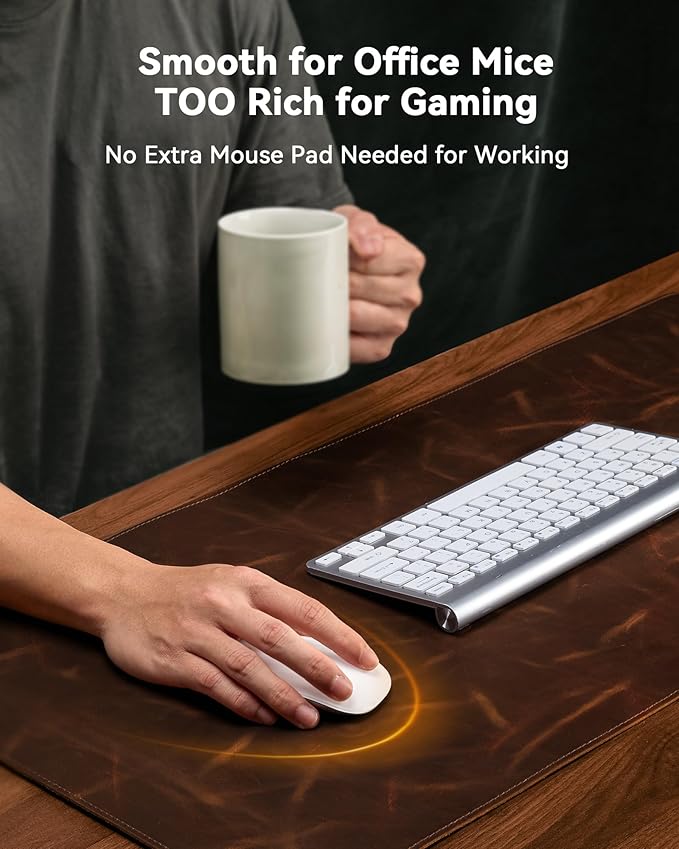 - Real Leather Desk Mat:Through the leather deep fat process, the whole leather has a Pull-Up effect and endowed with its Oil-Wax feeling. The finger gently sliding or pressing the leather surface can produce a discoloration effect, and the more you use it, the brighter it is. The inadvertently scratches will become lighter with time to form a pulp effect, and then present a vintage and rugged style.