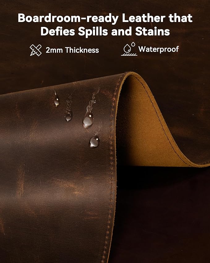 - Waterproof And Easy To Clean: Made of water-resistant and durable 100% Full-Grain leather, this desk pad protects your desktop from spilled water, drinks, ink and the other liquid. Easy to clean, just wipe with a wet cloth or paper
