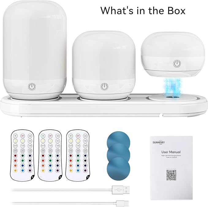- RECHARGEABLE NIGHT LIGHT WITH 3-IN-1 MAGNETIC CHARGING STATION. Power up all 3 portable night lights at once on the magnetic charging station, or charge each night light individually with the included Type-C cable(NOTE:The power adapter is not inclued.) Thanks to magnetic snap-on, you can easily charge these samll table lamp with one hand – even in the dark!