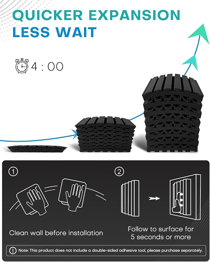 - EASY SHAPE RECOVERY: If the sound proof foam panels do not return to its original shape, simply soak it in water for a few minutes, then let it air dry. It will typically regain its form within 24 to 48 hours
