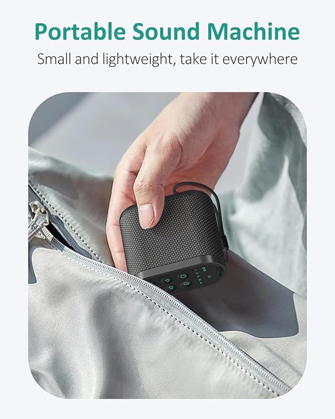 - ๐ใ๐๐ญ๐ฒ๐ฅ๐ข๐ฌ๐ก & ๐๐จ๐ฆ๐ฉ๐๐๐ญ & ๐๐ฎ๐ฅ๐ญ๐ข๐๐ฎ๐ง๐๐ญ๐ข๐จ๐ง ๐๐๐ฌ๐ข๐ ๐งใThe portable white noise sound machine is small enough to fit in your hand. If you travel and lug around a travel sound machine, this is an excellent alternative with favorable features: compact size, rechargeable battery, headphone jack, lanyard for hanging anywhere, 21 non-looping sounds, customized timers, 32 volume levels, and even memory functions