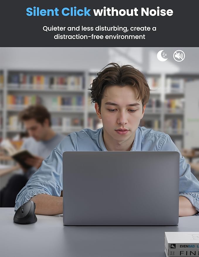 - 【Whisper-Quiet Clicks for Distraction-Free Environments】The wireless ergonomic mouse's silent click technology reduces noise by 99%.Whether you're in a library, open-office plan, or cozy living room, enjoy silent precision. This wireless ergonomic mouse compatible with Bluetooth and 2.4G connections, Fully compatible with Windows (11/10/8/7/XP) and Mac OS X10.4—effortlessly pair with desktops, laptops, and tablets for versatile use.