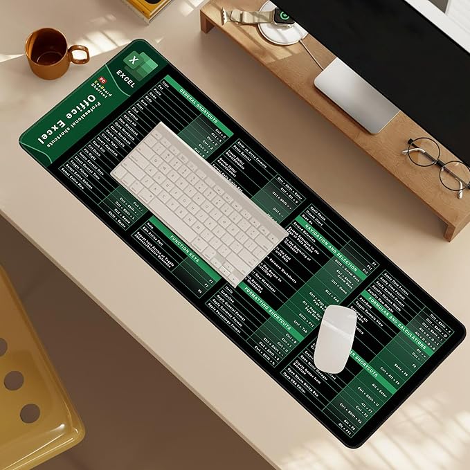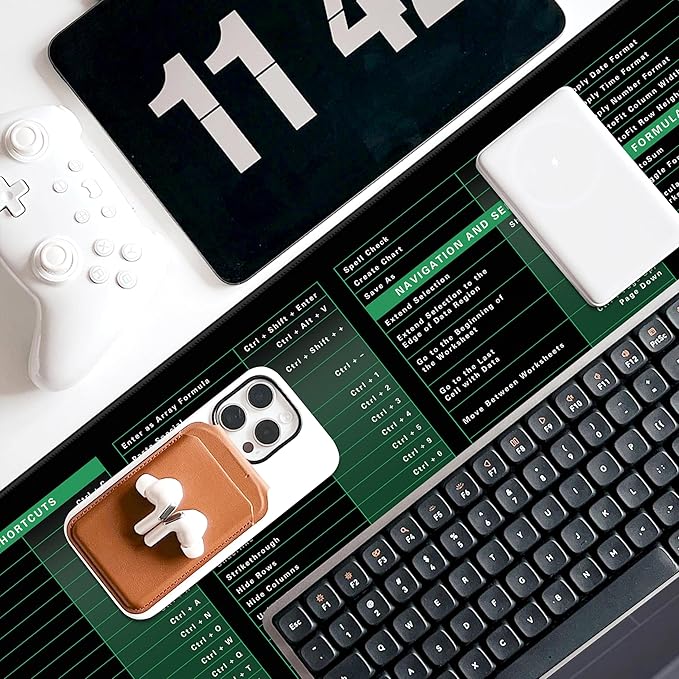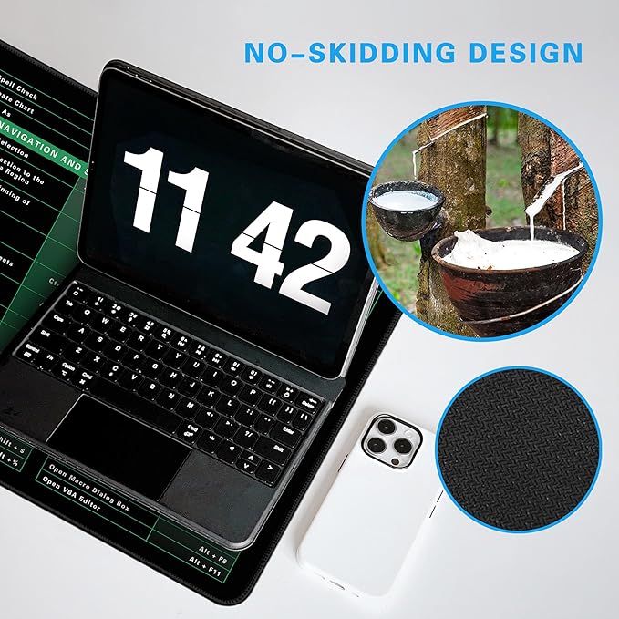 - ULTRA-SMOOTH SURFACE:This 31.5"x11.8" inch excel shortcuts mousepad offers ample workspace with a water-resistant leather surface, anti-slip base, and premium natural rubber. This excel pad is perfect as a mouse pad, writing pad, or stylish desk mat