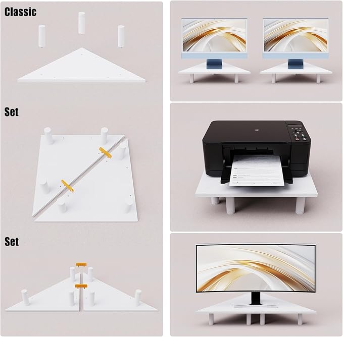 - 【Versatile Design】 The WEGASTU 2 Pack White Corner Monitor Stand features a triangle/square design, perfect for computers, laptops, PCs, iMacs, and printers, saving desk space and enhancing productivity.