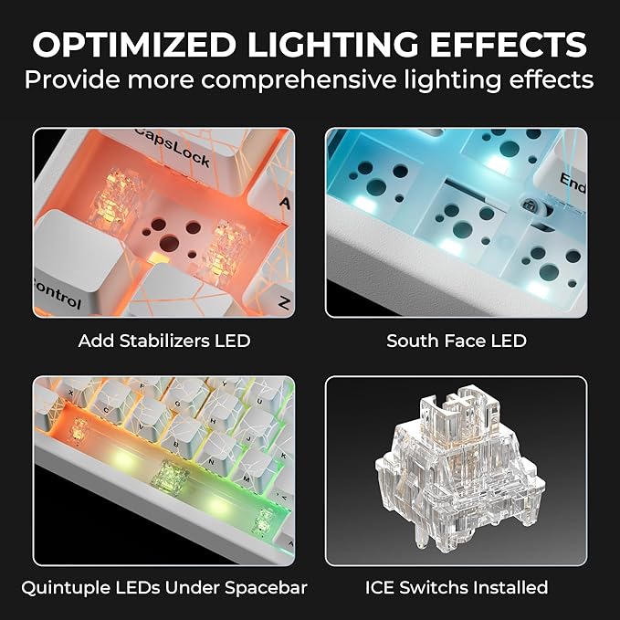 - 【Hot Swappable & Transparent Linear Switches】The keyboard is equipped with hot-swappable PCB to ensure easy replacement of different mechanical switches with 3-pin and 5-pin. The M67 Hot-Swappable custom keyboard adopts pre-lubed transparent mechanical switches with 80 million keystroke lifespan. Creamy and thocky sounding gives you unlimited fun while typing.