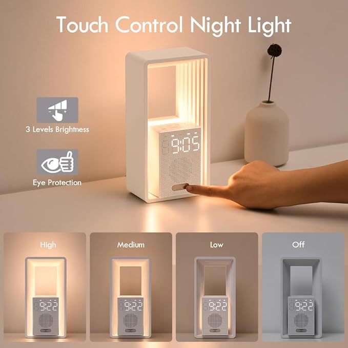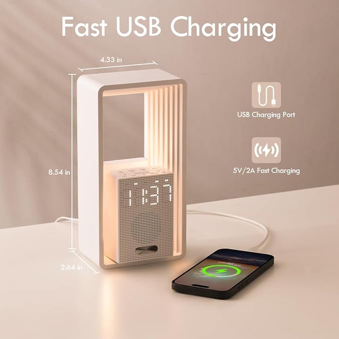 - Built-In 10W USB Charging Port - Charge your phone or tablet overnight with the integrated USB port. No need for extra wall adapters—this 3-in-1 device saves space on your nightstand and keeps your essentials powered.