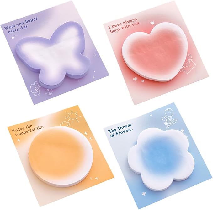 4Pack /120 Sheets Butterfly, Flower, Circle, Heart Shaped Sticky Notes for Studying Work