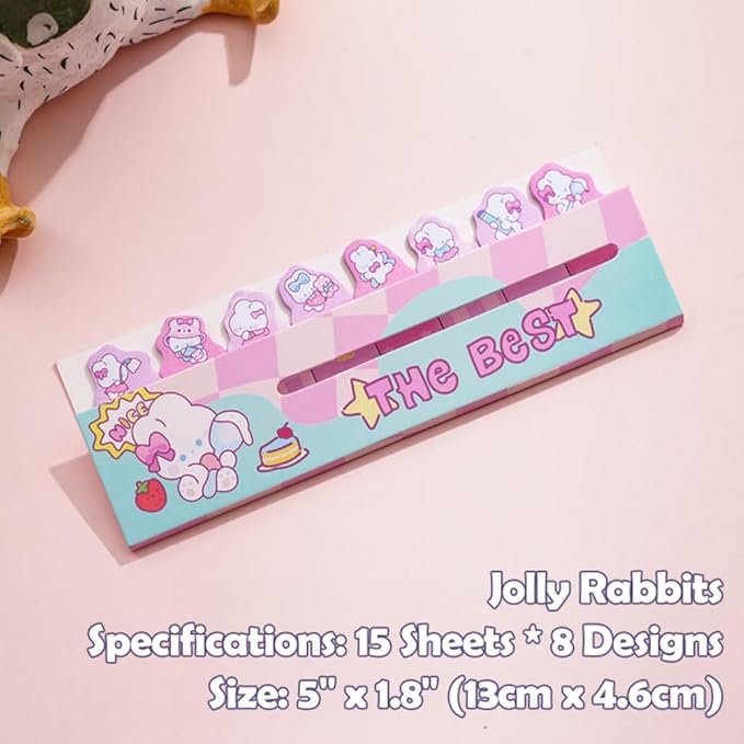 - 4 Cute Designs, 480 Sheets Total – This set of creative index sticky notes features 4 adorable designs: Cake Sweetheart, Happy Bunny, Cute Puppy, and Sweet Girl, with 8 pads per design, 15 sheets per pad, totaling 480 sheets to meet your daily marking needs.