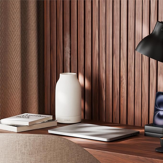 Vitruvi Air Waterless Diffuser for Home, 1500 Sq Ft Coverage | Diffusers for Home, Oil Diffuser, Housewarming Gift, Ceramic Finish, 5 Adjustable Scent Strengths | White