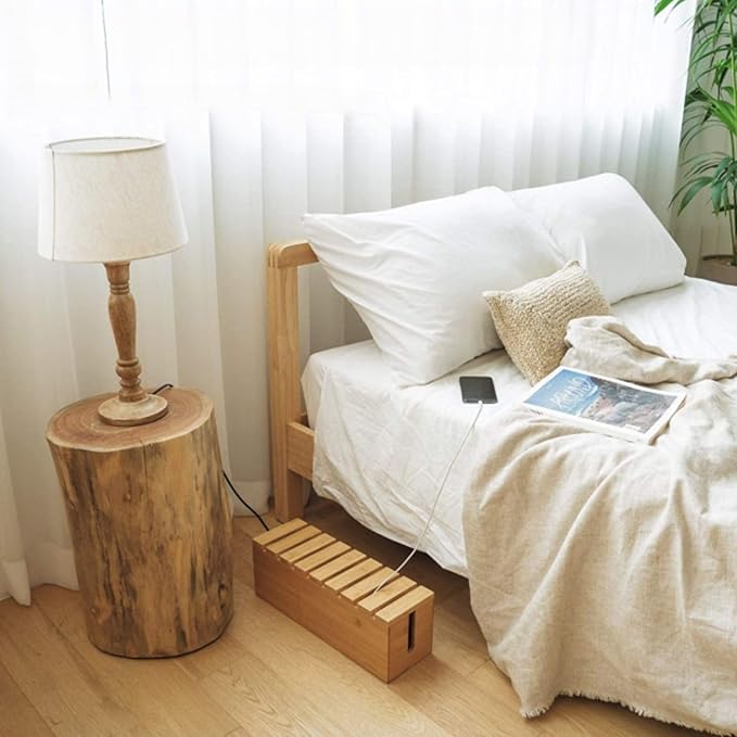 - STYLISH BAMBOO DESIGN: The elegant design of our bamboo cable organizer box enhances the aesthetics of your workspace. It combines functionality with a chic look, seamlessly complementing any home or office decor.