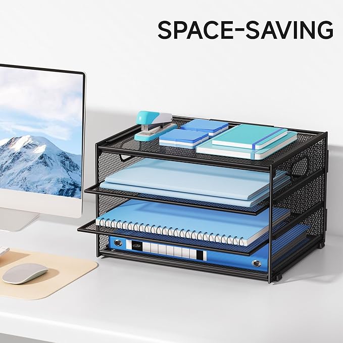 - 3-Tier Desk Organizer with Handle, Space-Saving Design – Maximize your desk space with Lavatino’s vertical stacking design. Fits letter/A4 papers, folders, and magazines in 3 separate tiers, keeping documents visible & accessible without clutter.Built-in Handle – Makes it portable for convenient relocation (Dimensions: 12.6" x 9.1" x 7.6")