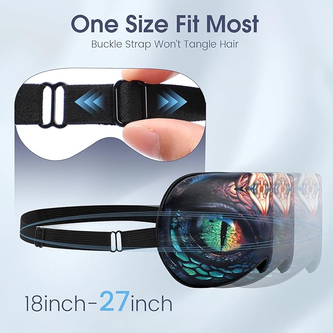 - 【Adjustable Design】Eye mask for sleeping has an adjustable elastic strap that you can adjust to fit your head in the most comfortable position without moving or falling off while you sleep. Our night blindfold are suitable for both kids and adults. This blackout eye mask blindfold is so lightweight yet fits perfectly on your face that you can wear this sleep mask for sleeping, concentration, meditation, mindfulness or Yoga