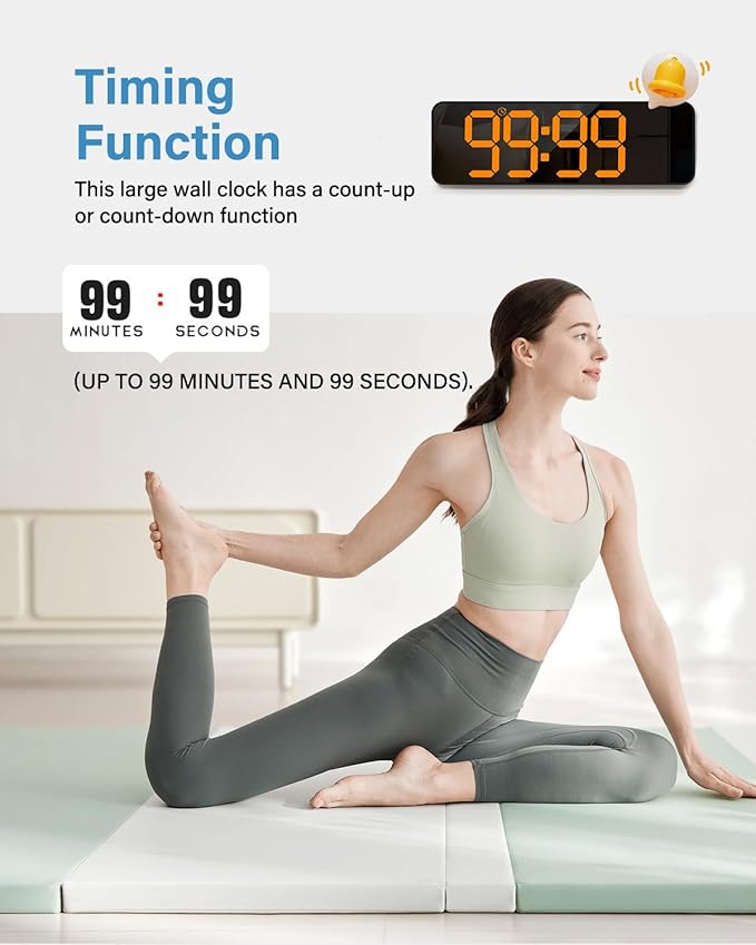 - 【Timing Function】This large wall clock has a count-up or count-down function (up to 99 minutes and 99 seconds).